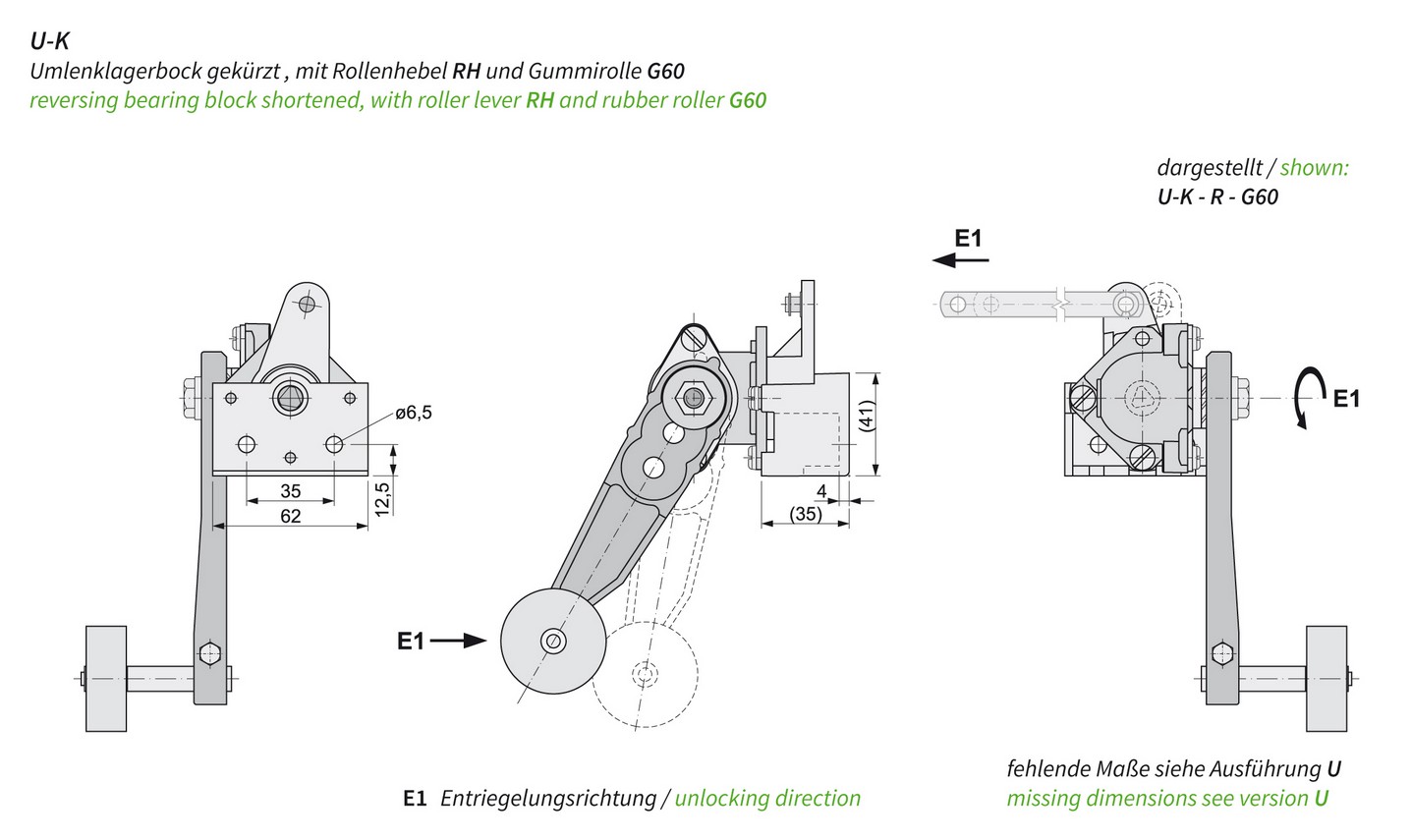 Med hjälp av vinkelväxeln omlänkas låsarmens rörelse 90 grader.