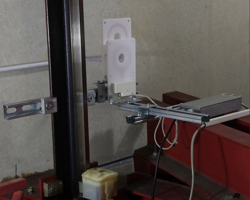 - Sändare med strömförsörjningsenhet fästs på hisskorgen